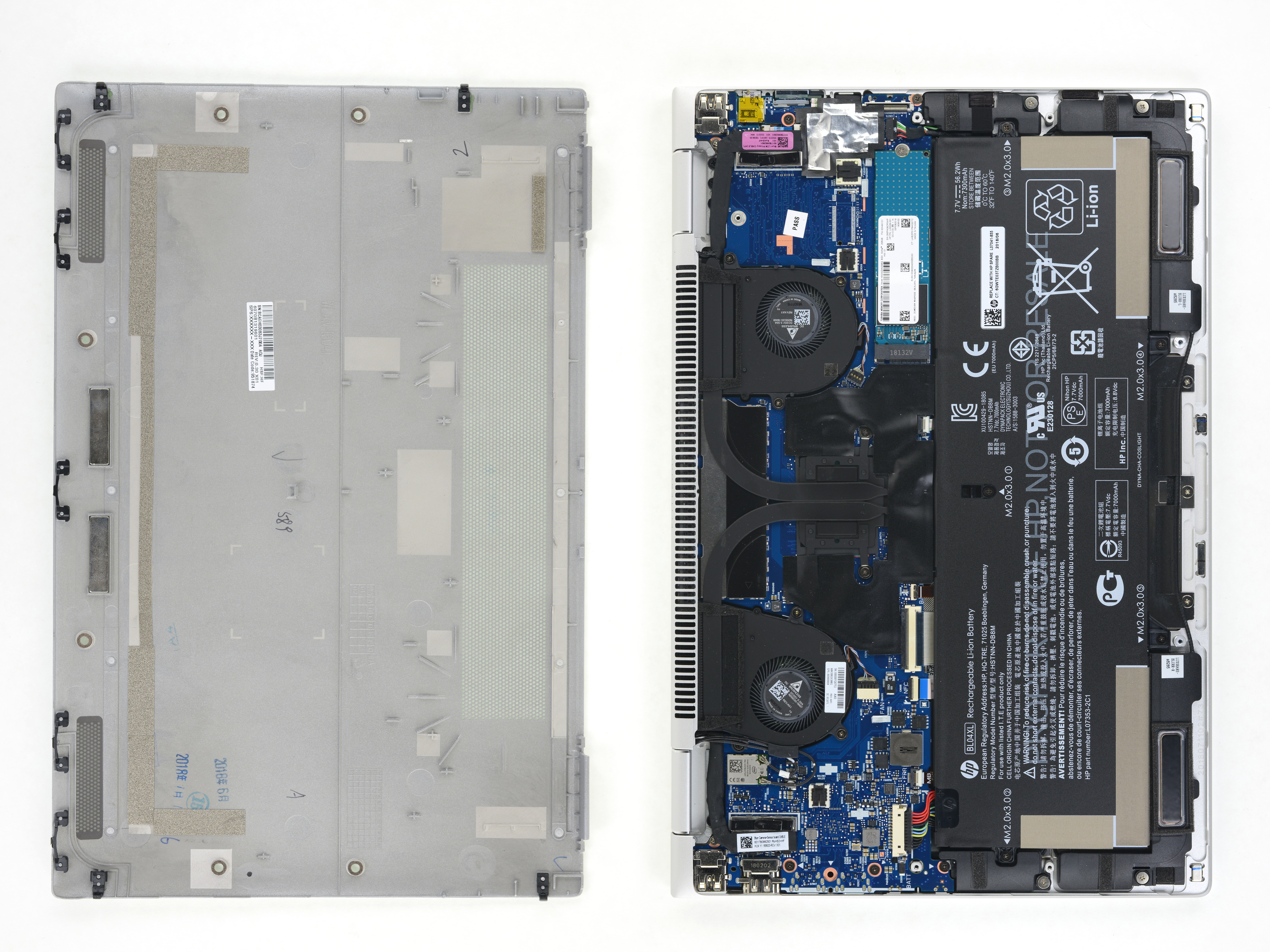 With the EliteBook x360 1040 G5 in pieces on our teardown table, we’re a bit conflicted. We lauded this machine’s less-flexible sibling with many praises, and it’s hard to not make too many comparisons here. On one hand, this machine is very repairable compared to glue-filled competitors in the thin-and-light-and-powerful space. A user-friendly replaceable battery and SSD are amazing to see this far into the 21st century, and HP still provides free repair documentation for each of its devices. On the other hand, even past x360 models have had fewer components soldered to the motherboard, and this iteration still relies heavily on adhesive, tape, and fragile clips to hold everything together. We would also love to see a little more modularity in some of the larger components to keep the cost of repairs down.